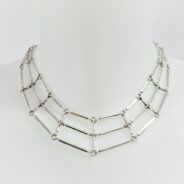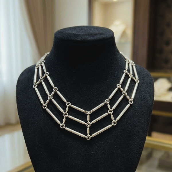 “Statement” collar: joya llamativa que se convierte en el punto focal de todo outfit. Su diseño es audaz e ingenioso, de tamaño grande y brillante, destaca sobre el conjunto para atraer toda la atención.