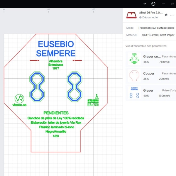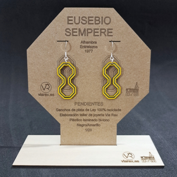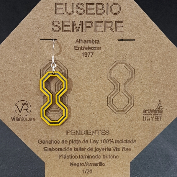 Eusebio Sempere fue uno de los pioneros en la utilización del ordenador aplicado al arte desde finales de los años 60 y por esto, estos pendientes están hechos por CAD (diseño asistido por ordenador) para seguir en esta linea suya.